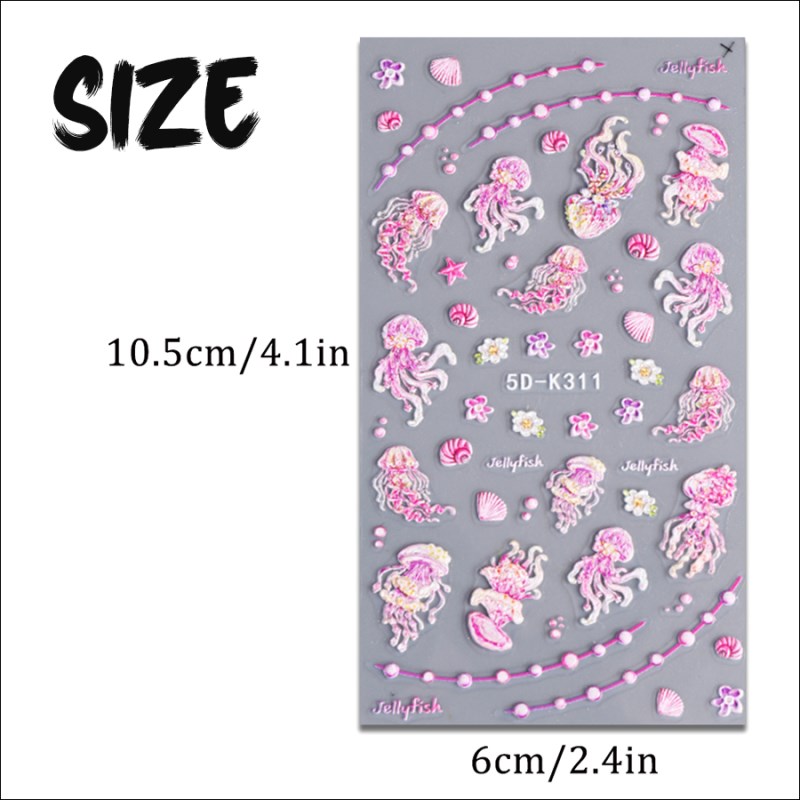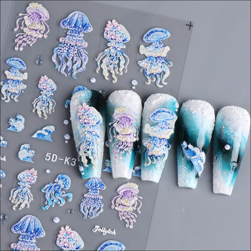 5D-K176/177 5D Relief Marine Creature Style Nail Sticker,2 designs avaiilable, please kindly note while purchasing,MOQ 20pcs.
