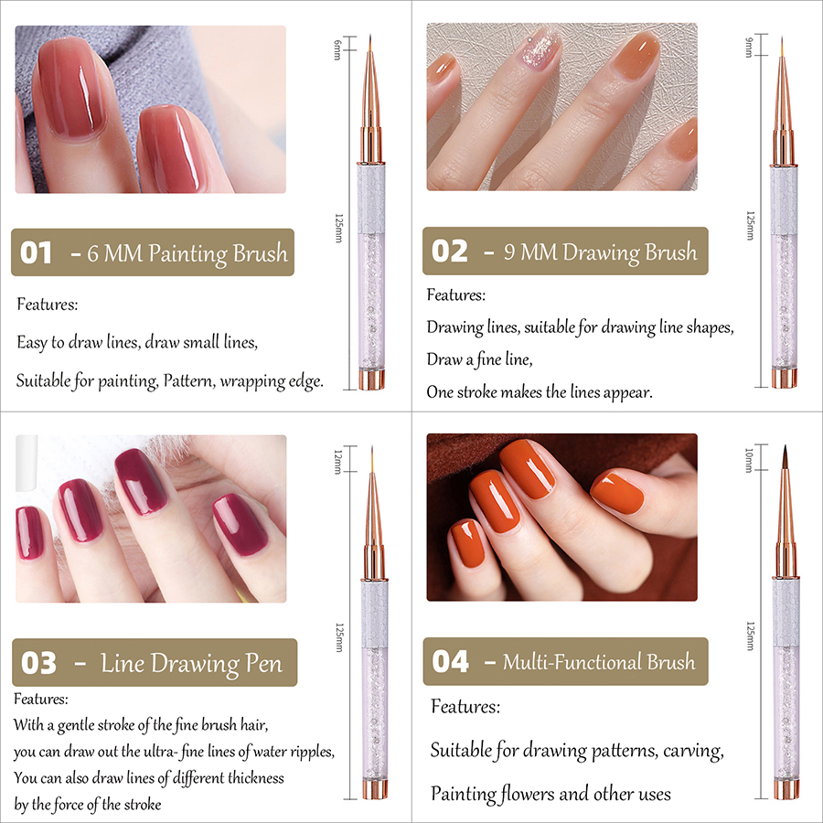 Crystal Handle Nail Art Brush Collection, 15 types of designs available, please kindly note while purchasing, thank you!Please kindly note the packaging you need.