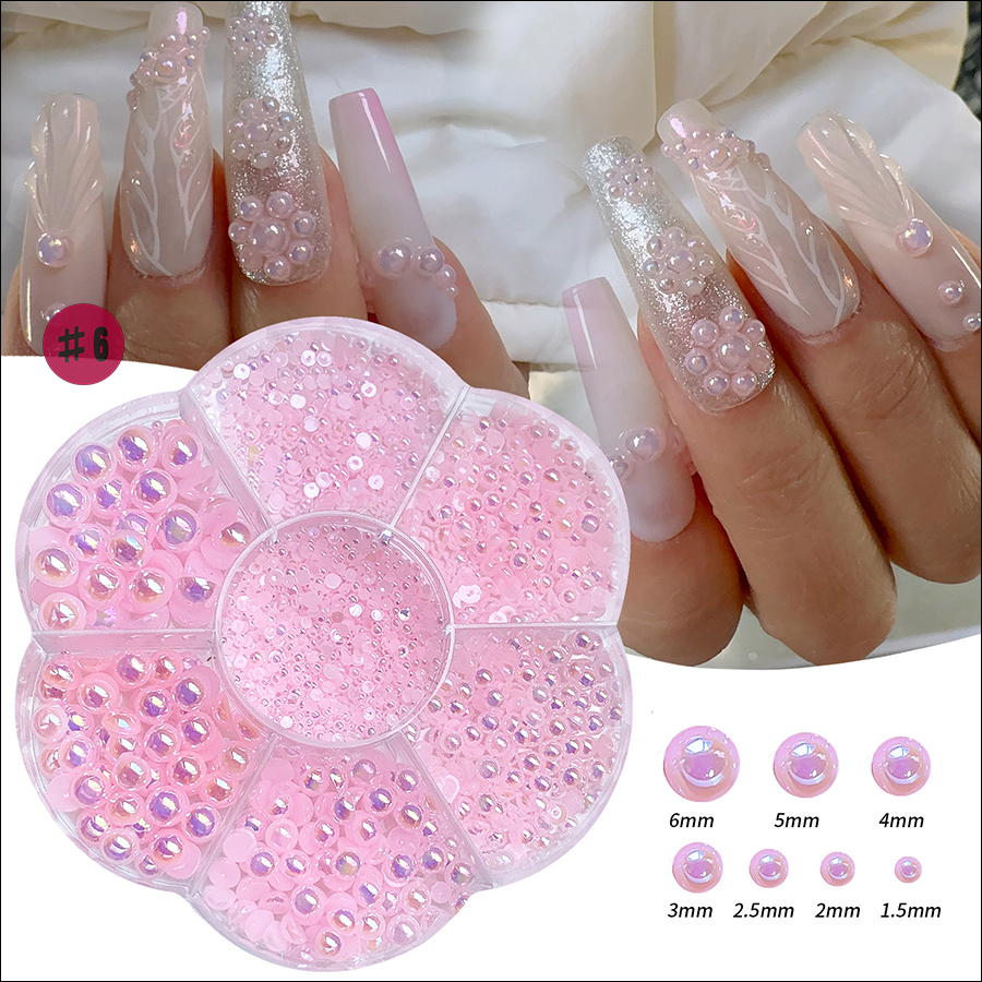 D269 nail art semi-circular ab color pearl jewelry, available in 6 colors. Please make a note when purchasing, thank you!