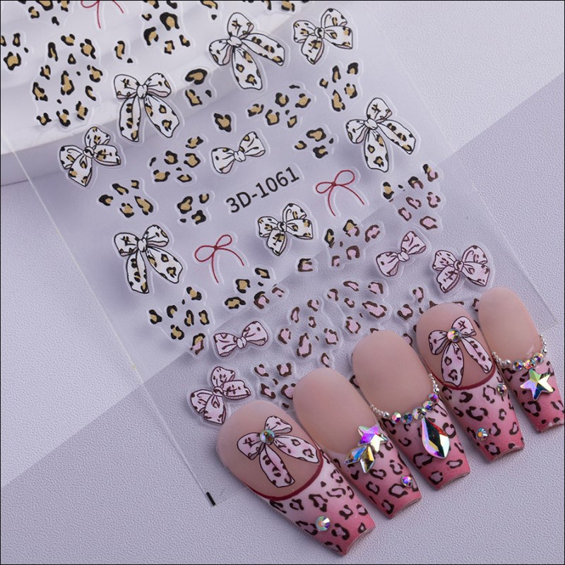 3D-1060/1061 Internet Celebrity Instagram Style Leopard Print Bow Nail Sticker
