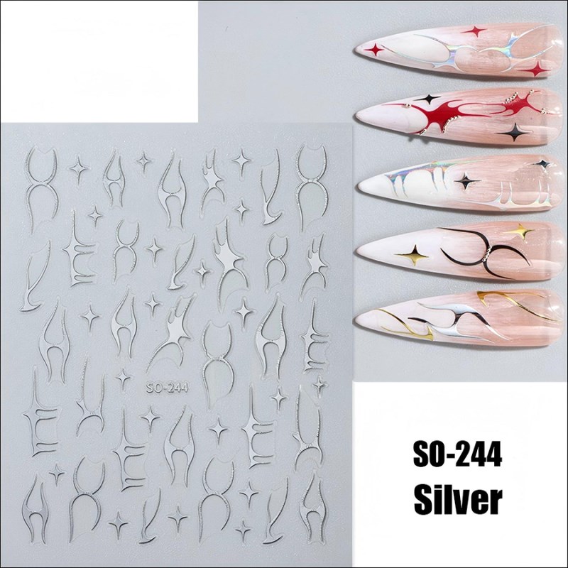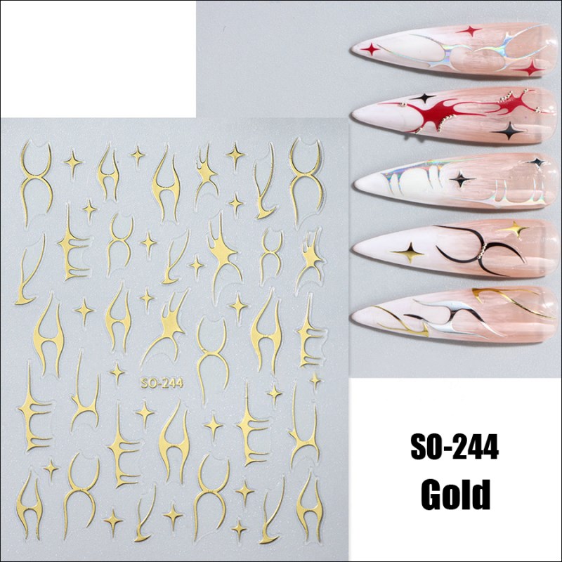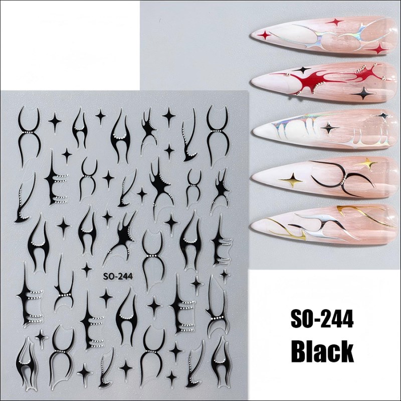 SO-232-272 INS Black Floral Diamond Gold Silver Glitter Nail Sticker,29 colors avaiilable, please kindly note while purchasing,MOQ 20pcs.